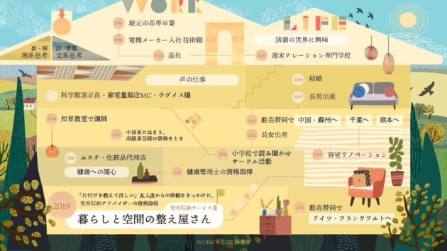 お友達の紹介で、イラストレーターの麦さんに履歴書イラスト(ポートフォリオ?)を作っていただきました。 学校卒業から今まで。WORKとLIFEの両方が書かれているのが特徴。私の場合、駐在・ママ・主婦などなどがLIFE。その … 続きを読む 私のこれまでを1枚で